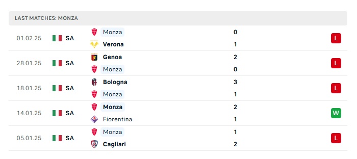 Tất nhiên, phong độ thi đấu trong thời gian qua của Monza sẽ không thể nào so sánh được với Lazio. Trong 10 trận đấu gần nhất của đội khách, họ chỉ có đúng 1 chiến thắng và còn lại là cả 9 trận toàn thua. Trong khi đó, Lazio chơi không quá tốt nhưng vẫn có 3 thắng, 1 hòa và thua 2 trong 6 trận gần nhất. Như vậy, đội chủ nhà ngày hôm nay không gặp nhiều khó khăn để thắng cách biệt đối thủ.