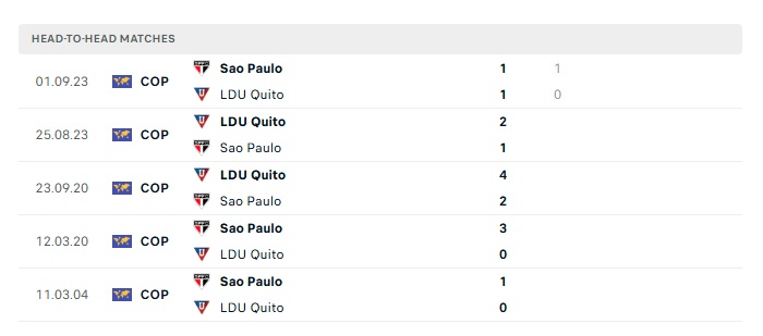 Lịch sử đối đầu LDU Quito vs Sao Paulo