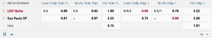 - Kèo tỷ số H2 LDU Quito vs Sao Paulo: 0-0