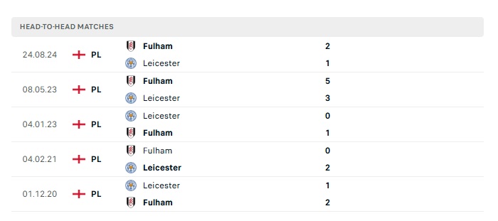 • Kèo tỷ số H2 Leicester City vs Fulham: 0-1