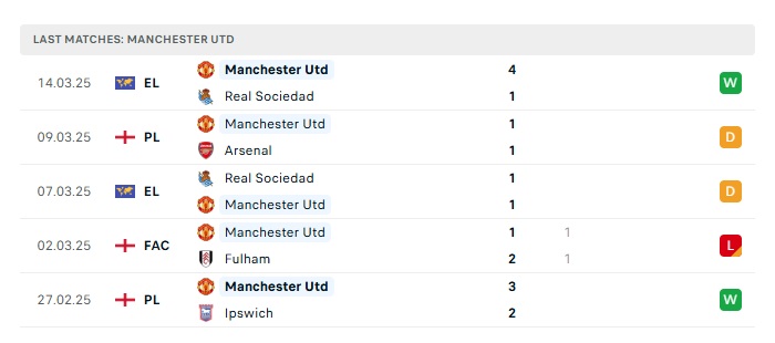 - Phong độ gần đây Man Utd