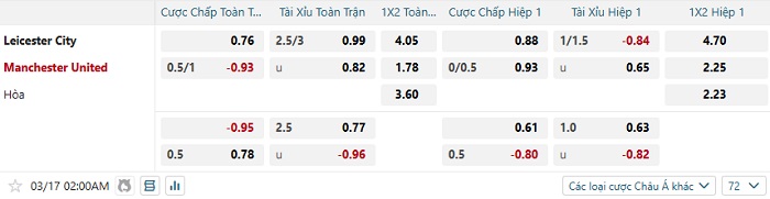Soi kèo châu Á, kèo Leicester City vs Man Utd