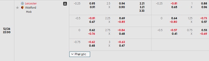 Soi kèo châu Á, kèo Leicester City vs Watford