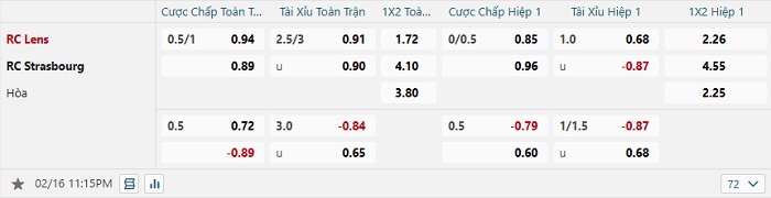 Soi kèo châu Á, kèo Lens vs Strasbourg