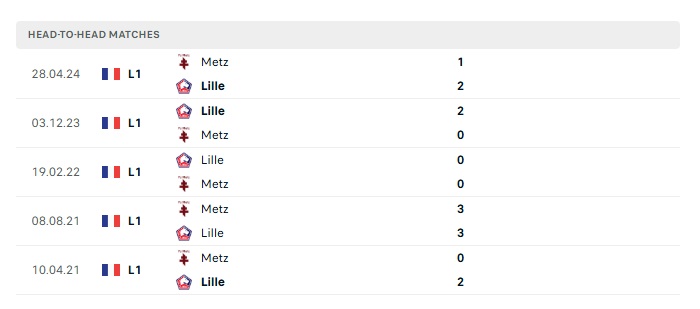 - Kèo tỷ số H2 Lille vs Metz: 3-1