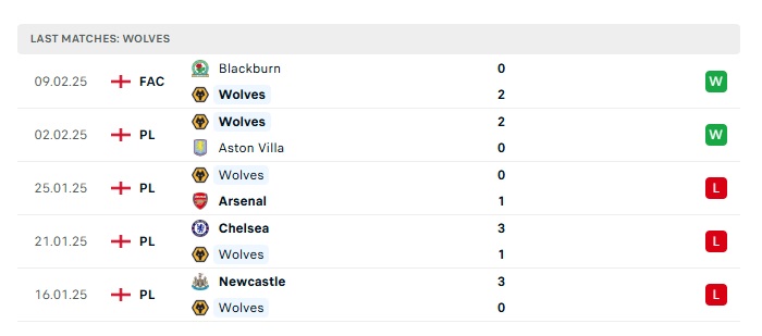 - Phong độ gần đây Wolves