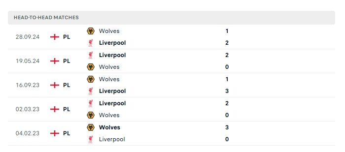 Lịch sử đối đầu Liverpool vs Wolves