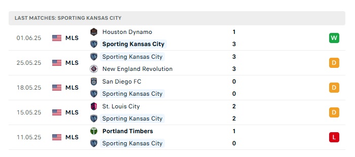 - Phong độ gần đây Sporting Kansas