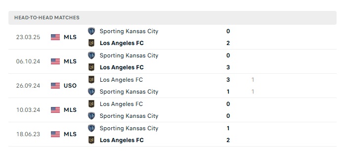 Lịch sử đối đầu Los Angeles FC vs Sporting Kansas
