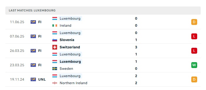 - Phong độ gần đây Luxembourg