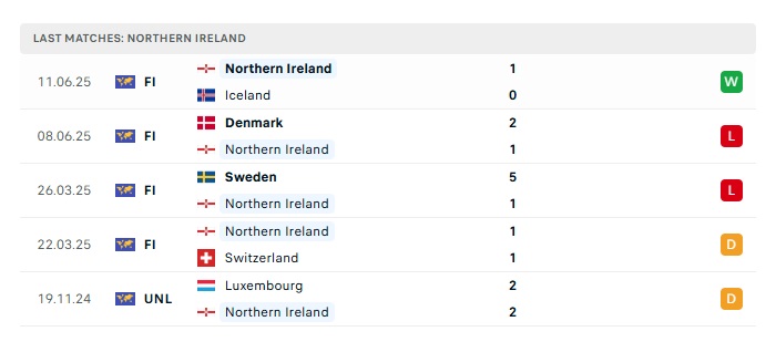 - Phong độ gần đây Bắc Ireland
