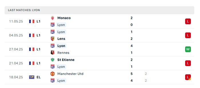 • Phong độ gần đây Lyon