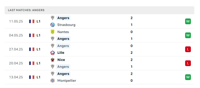 • Phong độ gần đây Angers