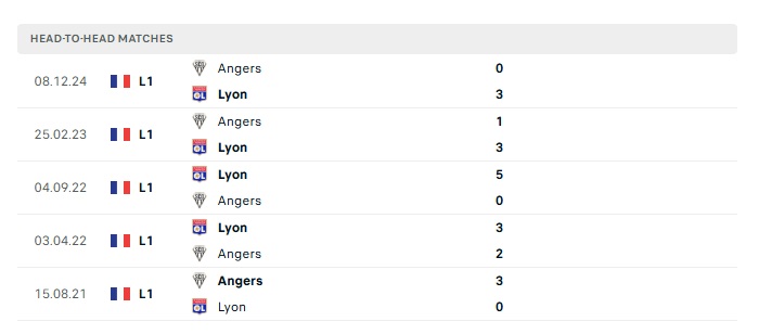Lịch sử đối đầu Lyon vs Angers