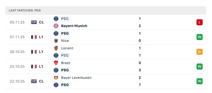 - Phong độ gần đây PSG