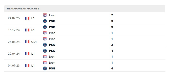 Lịch sử đối đầu Lyon vs PSG