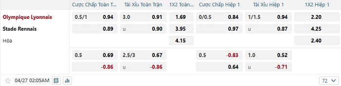 Soi kèo châu Á, kèo Lyon vs Rennes