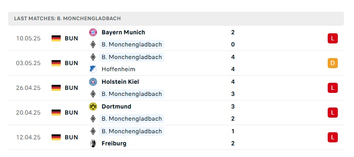 Như đã đề cập phía trên thì cả M.gladbach và Wolfsburg đều đã chính thức nghỉ ngơi sớm khi bỏ xa nhóm xuống hạng. Trong 5 vòng đấu gần nhất của đội chủ nhà M.gladbach, họ được ghi nhận chỉ có 1 hòa và 4 thua. Trong khi đó thì Wolfsburg chỉ có được 2 hòa và 3 thua trong 5 trận gần nhất. Qua đó việc các chuyên gia đánh giá trận đấu này sẽ hòa là hoàn toàn chính xác.