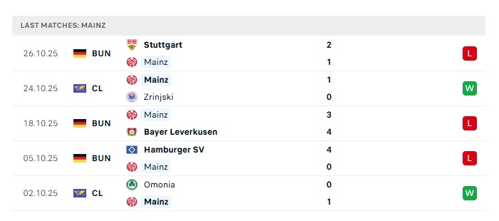 - Phong độ gần đây Mainz