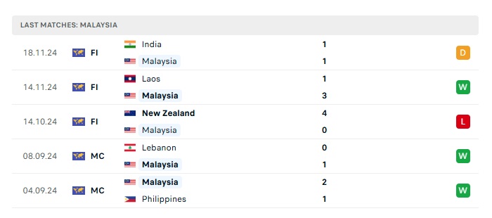 - Phong độ gần đây Malaysia