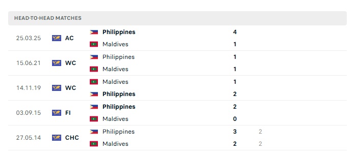 • Kèo tỷ số H2 Maldives vs Philippines: 0-4