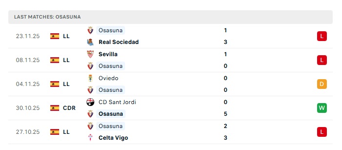 - Phong độ gần đây Osasuna