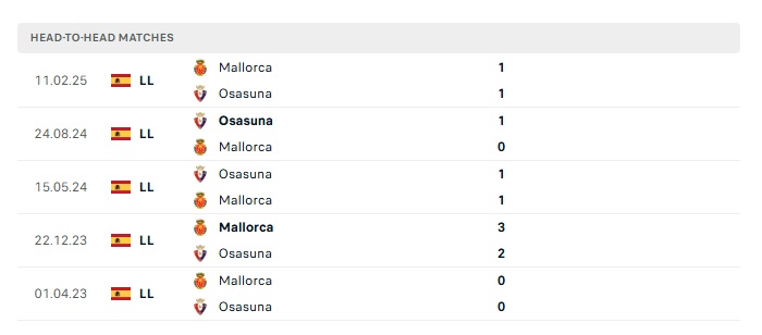 Lịch sử đối đầu Mallorca vs Osasuna