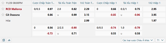 Soi kèo châu Á, kèo Mallorca vs Osasuna