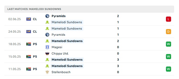 - Phong độ gần đây Mamelodi Sun
