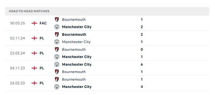 - Kèo tỷ số H2 Man City vs Bournemouth: 2-0