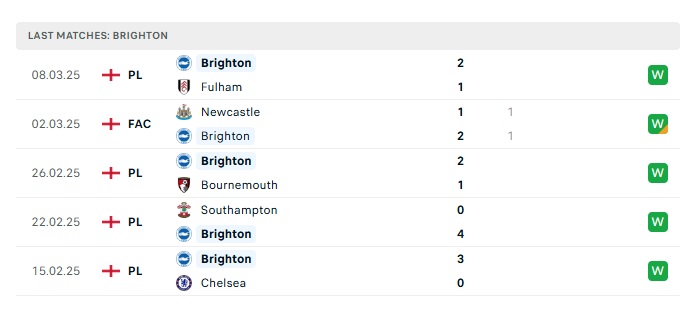 Hiện tại, phong độ thi đấu thời gian qua của Man City cũng đang có phần thua kém so với đối thủ. Nên biết rằng trong 7 trận đấu gần nhất của Man City, họ đang chỉ thắng 3 và còn lại là thua đến 4 trận. Trong khi đó thì Brighton lúc này đang có được chuỗi 6 trận toàn thắng liên tiếp. Do đó, dù bị đánh giá thấp nhưng khả năng để Brighton có 3 điểm tại sân khách hôm nay là có.