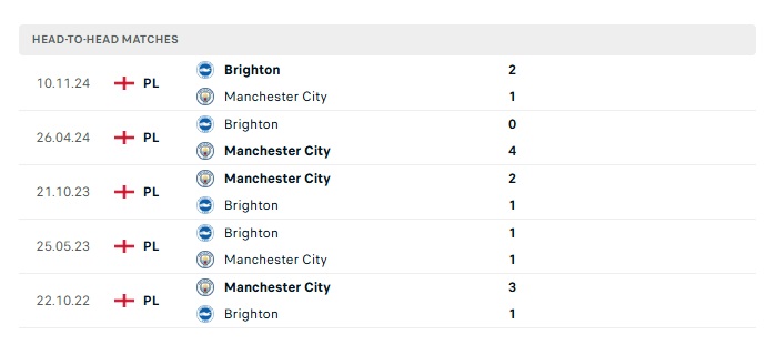 Nhìn vào thành tích thi đấu của Man City hiện tại, ai cũng tin rằng họ sẽ rất khó để có được chiến thắng trước Brighton. Trong 4 trận sân nhà gần nhất, Man City đang chỉ có 2 chiến thắng và 2 thua. Trong khi đó thì Brighton đã có được cho mình 4 thắng, 1 hòa và 1 thua trong 6 trận sân khách gần nhất. Qua đó, kèo châu Âu trận đấu hôm nay sẽ có Hòa là lựa chọn an toàn nhất.