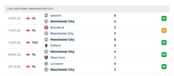 • Phong độ gần đây Man City