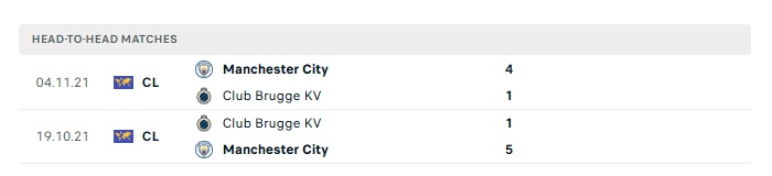 Lịch sử đối đầu Man City vs Club Brugge