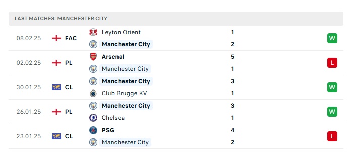 - Phong độ gần đây Man City