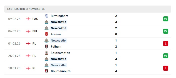 - Phong độ gần đây Newcastle
