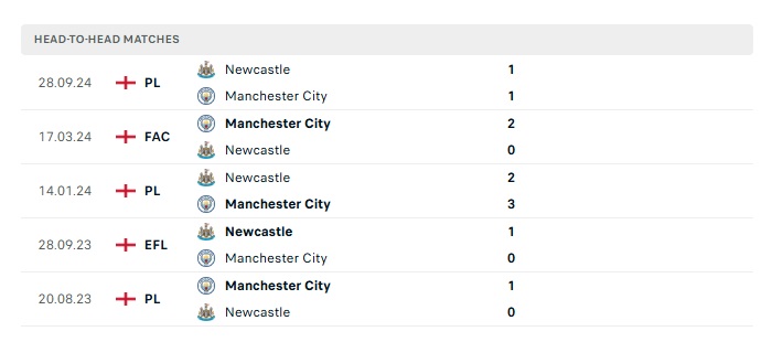 Lịch sử đối đầu Man City vs Newcastle