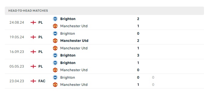 Lịch sử đối đầu Man Utd vs Brighton