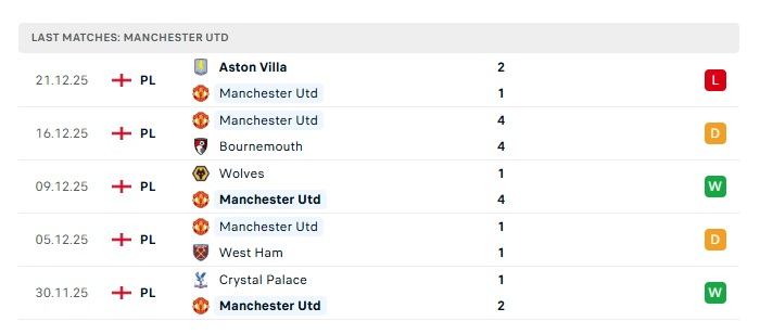 - Phong độ gần đây Man Utd