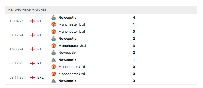 Phong độ gần đây Man Utd vs Newcastle