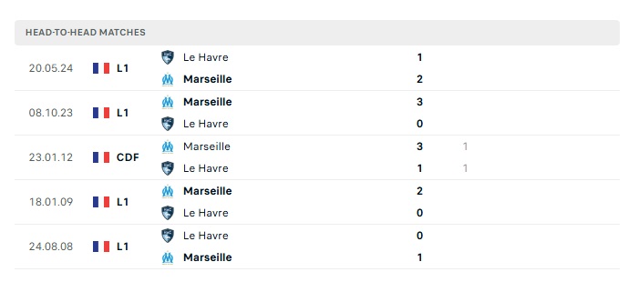 • Kèo tỷ số H2 Marseille vs Le Havre: 4-0