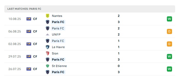 - Phong độ gần đây Paris FC
