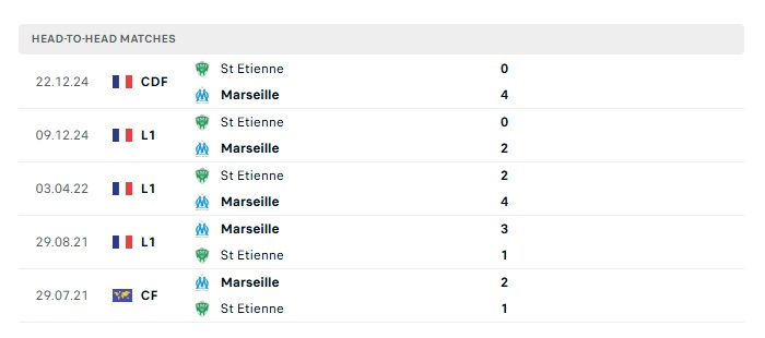 Lịch sử đối đầu Marseille vs Saint Etienne