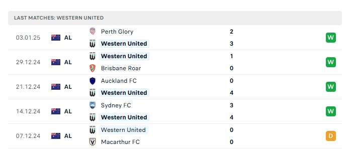 • Phong độ gần đây Western United