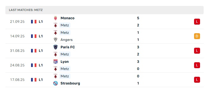 - Phong độ gần đây Metz
