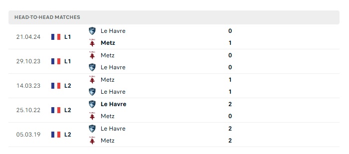 Lịch sử đối đầu Metz vs Le Havre