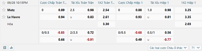 - Kèo tỷ số H1 Metz vs Le Havre: 0-0