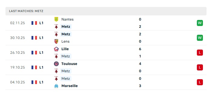 Theo các chuyên gia thống kê, phong độ thi đấu thời gian qua của Metz đã hoàn toàn thua kém so với Nice. Cụ thể thì trong 10 trận gần nhất, Metz chỉ thắng đúng 2 trận, hòa 2 và thua đến 6. Trong khi đó thì Nice lúc này đang thắng 3 và thua 3 trong 6 trận gần nhất. Vậy nên, 1 chiến thắng tối thiểu không phải khó với đội khách trong chuyến hành quân ngày hôm nay.
