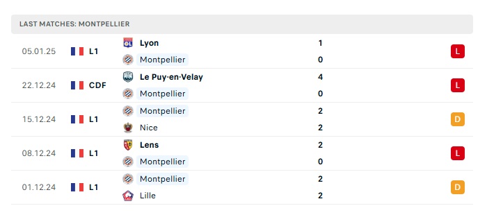 - Phong độ gần đây Montpellier