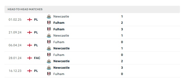• Kèo tỷ số H2 Newcastle vs Fulham: 1-0